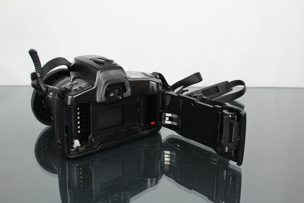 📸 Description: La Minolta Dynax 300si avec l'objectif Minolta AF Zoom 35-70mm est un appareil photo reflex argentique fiable, connu pour sa polyvalence et sa qualité d'image. Cette beauté d'occasion montre de légers signes d'utilisation avec des marques superficielles mineures sur le body et le pare-soleil, mais elle fonctionne parfaitement, offrant une expérience authentique de la photographie argentique.